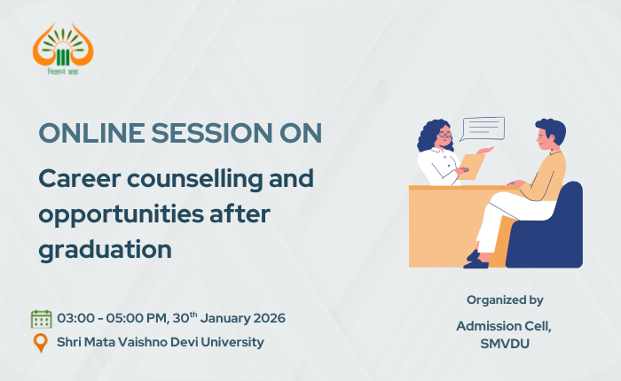 SMVDU is organizing an online session on Career counselling and opportunities after graduation on 30th of January 2026 from 3 PM t0 5 PM IST.