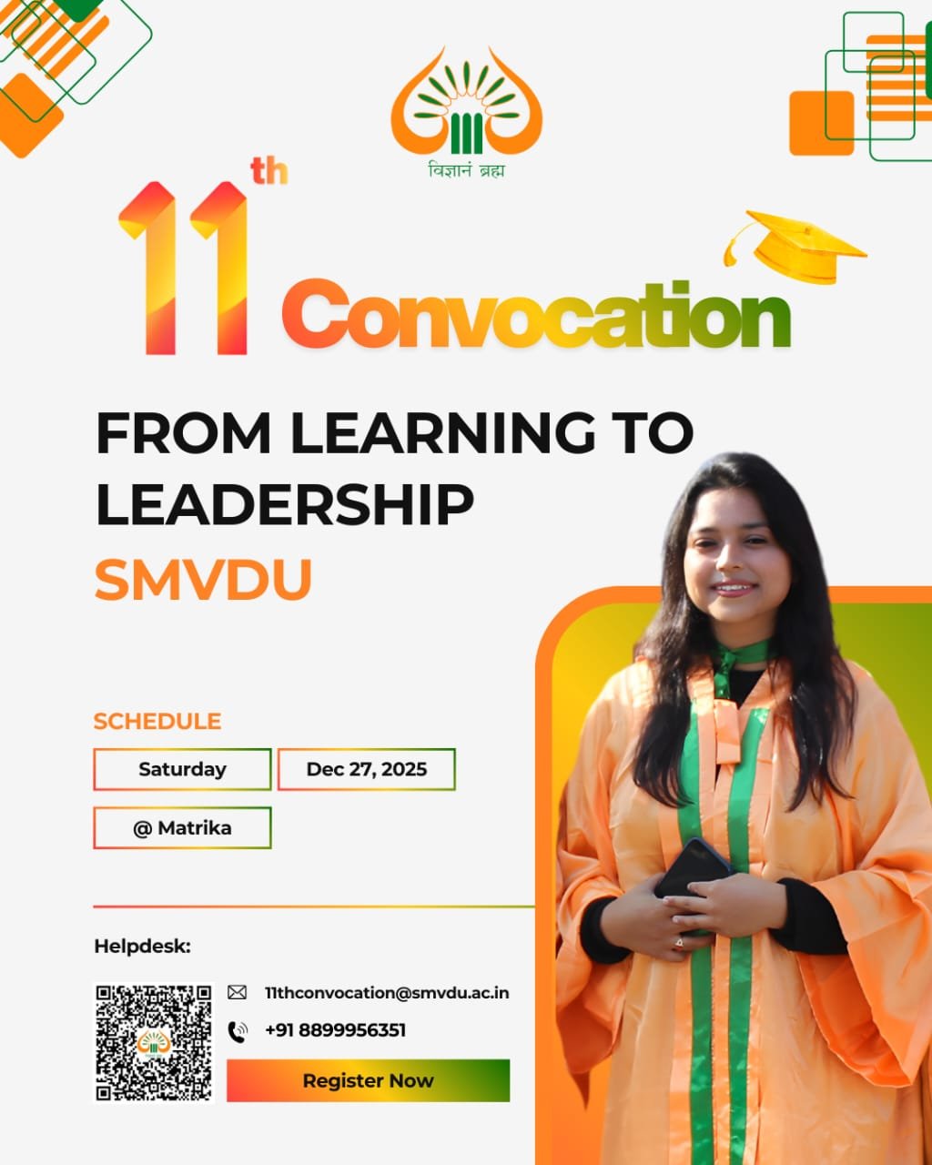 10. For any query / further information, please send an email at  11thconvocation@smvdu.ac.in