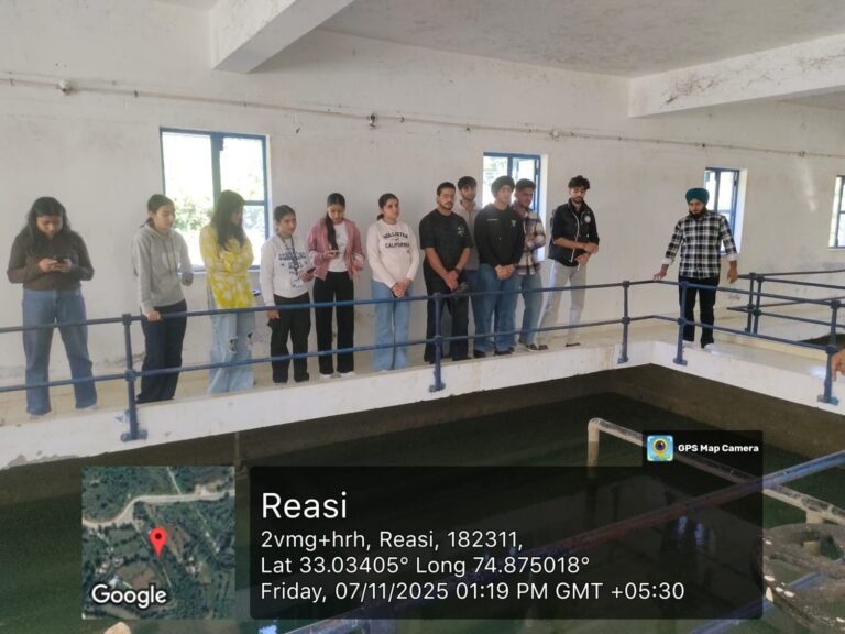 The visit was facilitated by Prof. Sharada M. Potukuchi, Nodal Officer, DYD program, Mr. Kamal Sharma, University Engineer, SMVDU and Mr. Deep Mahajan, AEE, PHE, Katra. During the visit, Mr. Ankit, AE, PHE provided the students with an in-depth understanding of the plant’s operational processes, including water filtration, pumping mechanisms, and the overall distribution network. The students were also apprised of the economic aspects involved in maintaining the water supply system and were sensitized to the critical importance of water conservation in the context of sustainable resource management. The students actively engaged in discussions, clarified their queries, and visited the various operational units of the plant, such as the pumping station, filtration unit, and distribution points. The exposure provided them with a practical understanding of the end-to-end process — from water collection at the catchment area to the delivery of clean, treated water to city consumers.