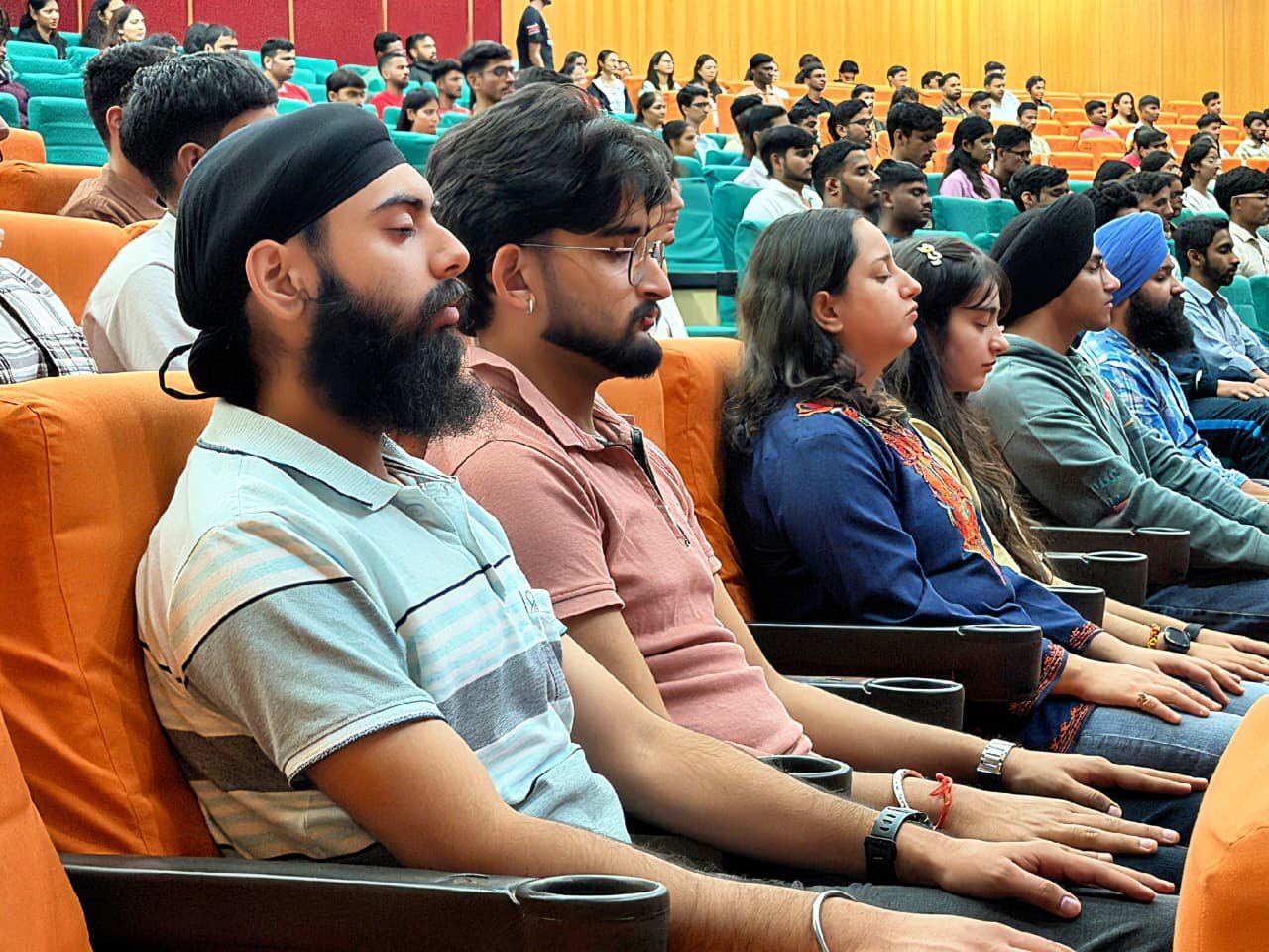 During her address, Dr. Malhotra spoke about the science and spirituality behind meditation, emphasizing its positive impact on emotional stability, concentration, and overall well-being. Participants were guided through a practical meditation experience using the “Miracle of Mind” app, which has been designed to help users deepen their awareness and enhance focus through guided practices. The app served as a valuable digital companion during the session, making meditation accessible and engaging for the university’s tech-savvy student community.