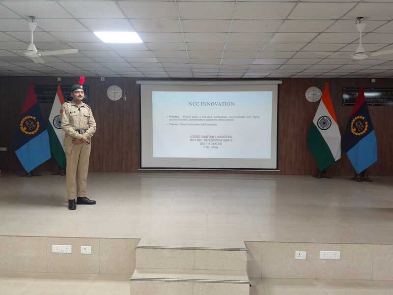 NCC cadets from Shri Mata Vaishno Devi University (SMVDU), Katra, brought laurels to the University by actively participating in the Idea Invitation Competition organized by the Jammu, Kashmir & Ladakh NCC Directorate. The event aimed to provide a platform for NCC cadets to present innovative and practical solutions addressing social, environmental, and national development challenges.