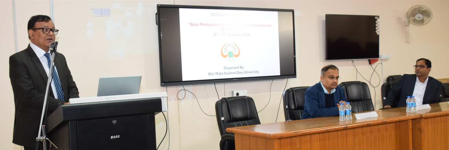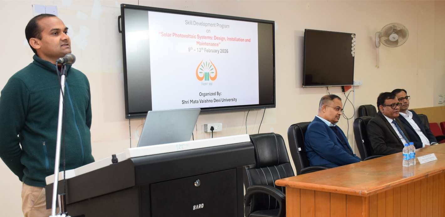 The School of Electrical Engineering at Shri Mata Vaishno Devi University (SMVDU) successfully organized a five-day Residential Skill Development Program titled “Solar Photovoltaic Systems: Design, Installation and Maintenance” from February 9–13, 2026. The program was funded and supported by the Higher Education Department, UT of Jammu & Kashmir. The inaugural session on February 9 was graced by Prof. Pragatikumar, Vice Chancellor, SMVDU, as Chief Guest. In his address, he highlighted the vital role of renewable energy in sustainable development and encouraged participants to explore entrepreneurial opportunities in the solar sector. The first technical lecture was delivered by Prof. M. Rizwan, Delhi Technological University, who shared insights on solar PV design and emerging technologies.