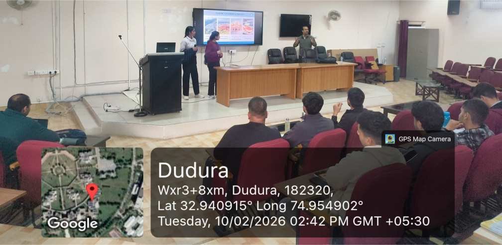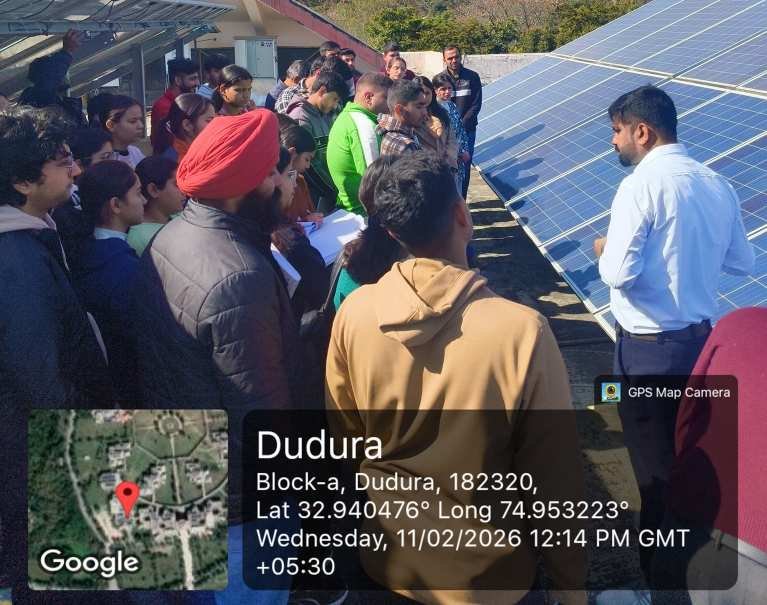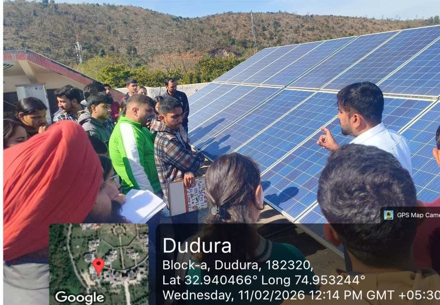 The training covered fundamentals of solar PV systems, component selection, inverter technologies, mounting structures, installation procedures, testing, and maintenance practices. Participants also engaged in extensive hands-on field training, including a visit to SMVDU’s solar rooftop plants, where they discussed system design, operational challenges, maintenance strategies, and return on investment calculations. Expert sessions were conducted by professionals from Gujarat Energy Research and Management Institute (GERMI) and PDF Engineers Pvt. Ltd., Ahmedabad, along with industry experts. The program saw enthusiastic participation from 46 attendees from the Jammu region.