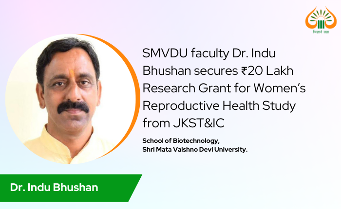 SMVDU faculty Dr. Indu Bhushan secures ₹20 Lakh Research Grant for Women’s Reproductive Health Study from JKST&IC