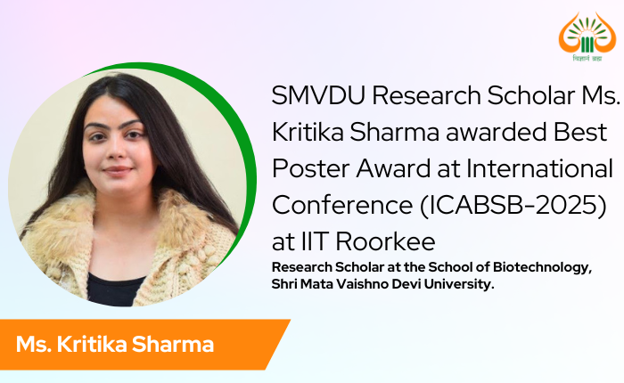 SMVDU Research Scholar Ms. Kritika Sharma awarded Best Poster Award at International Conference (ICABSB-2025) at IIT Roorkee