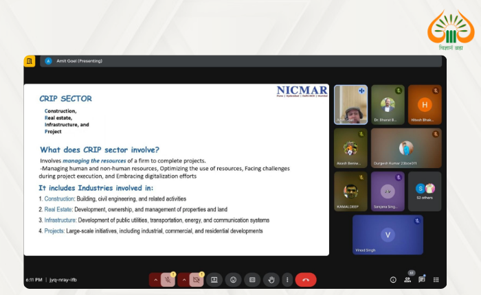 NICMAR Delhi-NCR, an AICTE-approved premier Construction Business School, in collaboration with Shri Mata Vaishno Devi University (SMVDU), successfully organized a webinar titled “Transition from Technical Roles to Managerial Leadership in the CRIP & Built Environment Sector.” The session was aimed at final-year students of Civil Engineering, Mechanical Engineering, and Electrical Engineering, aspiring to build leadership-oriented careers in the construction, real estate, infrastructure, and built environment domains.
