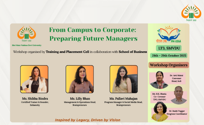 SVMDU is organising a workshop on “From Campus to Corporate – Preparing Future Managers” from 28th to 29th October 2025.